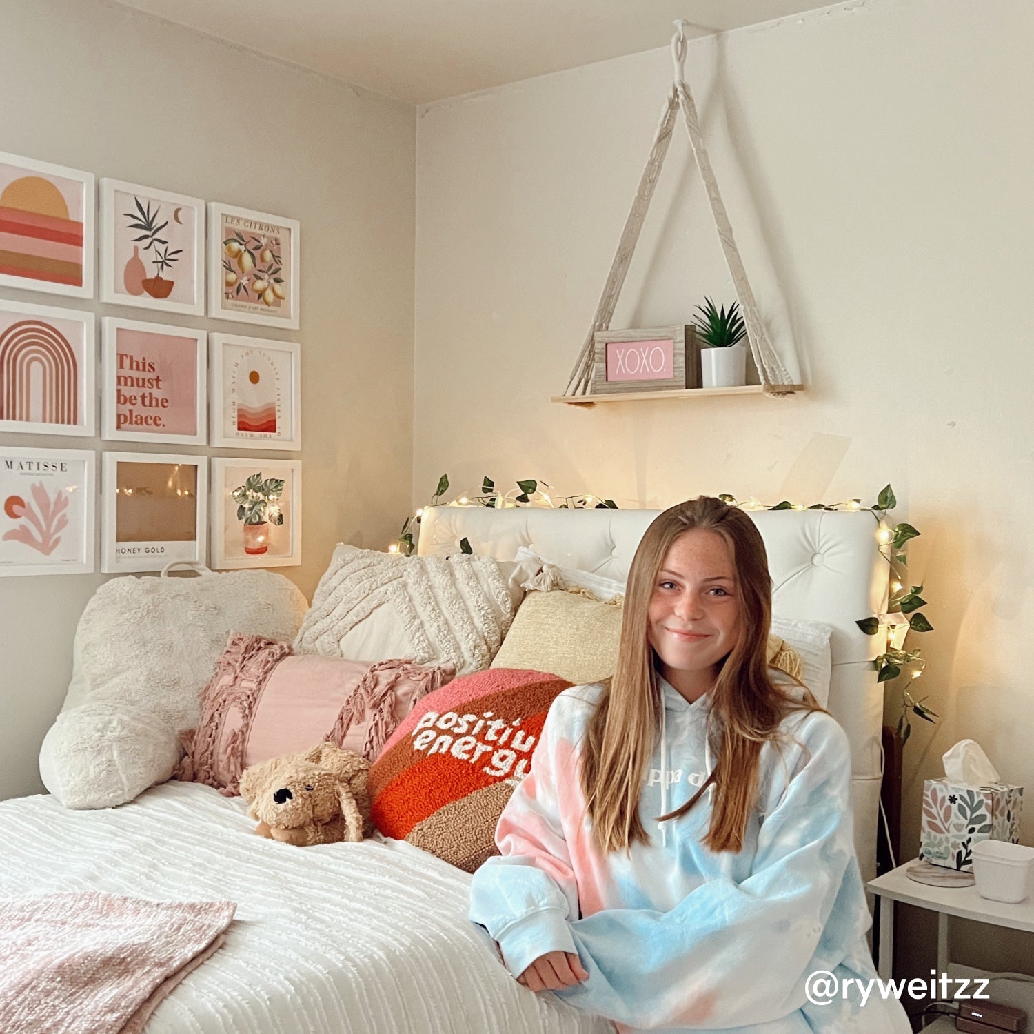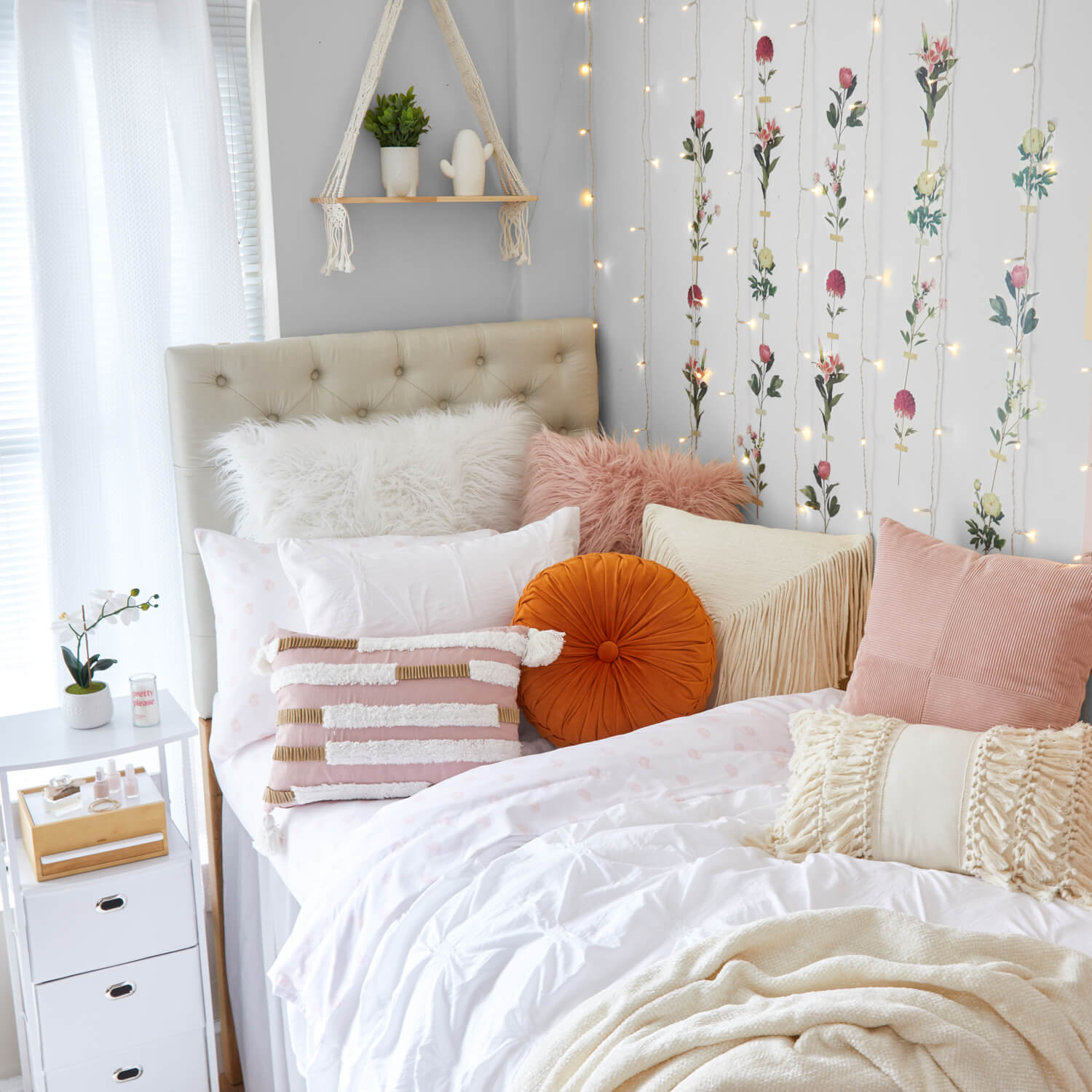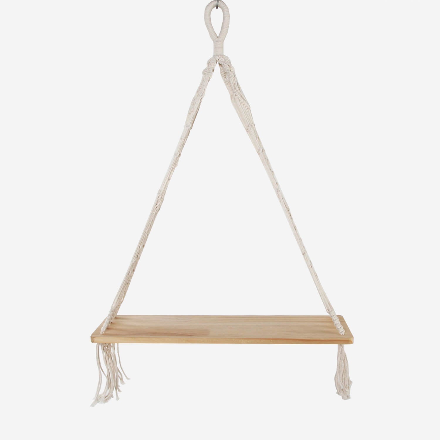 Uno scaffale in legno naturale e una sospensione in macramé si integrano perfettamente in un arredamento minimalista o in stile bohémien. Super carino e funzionale.